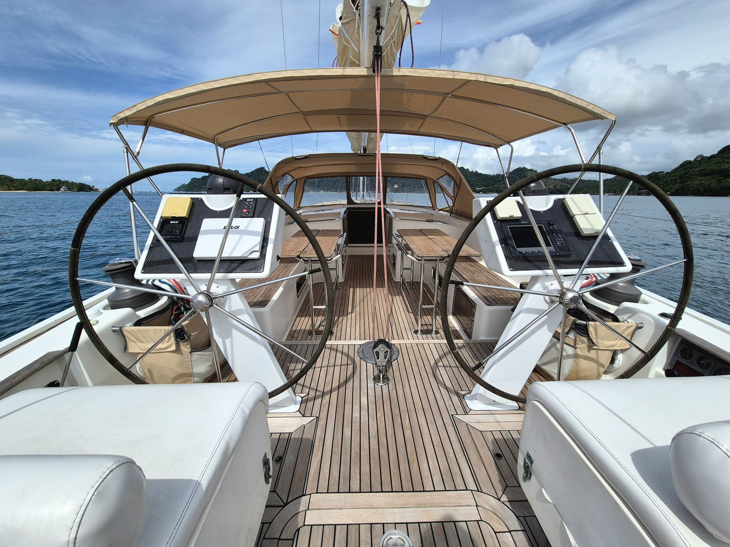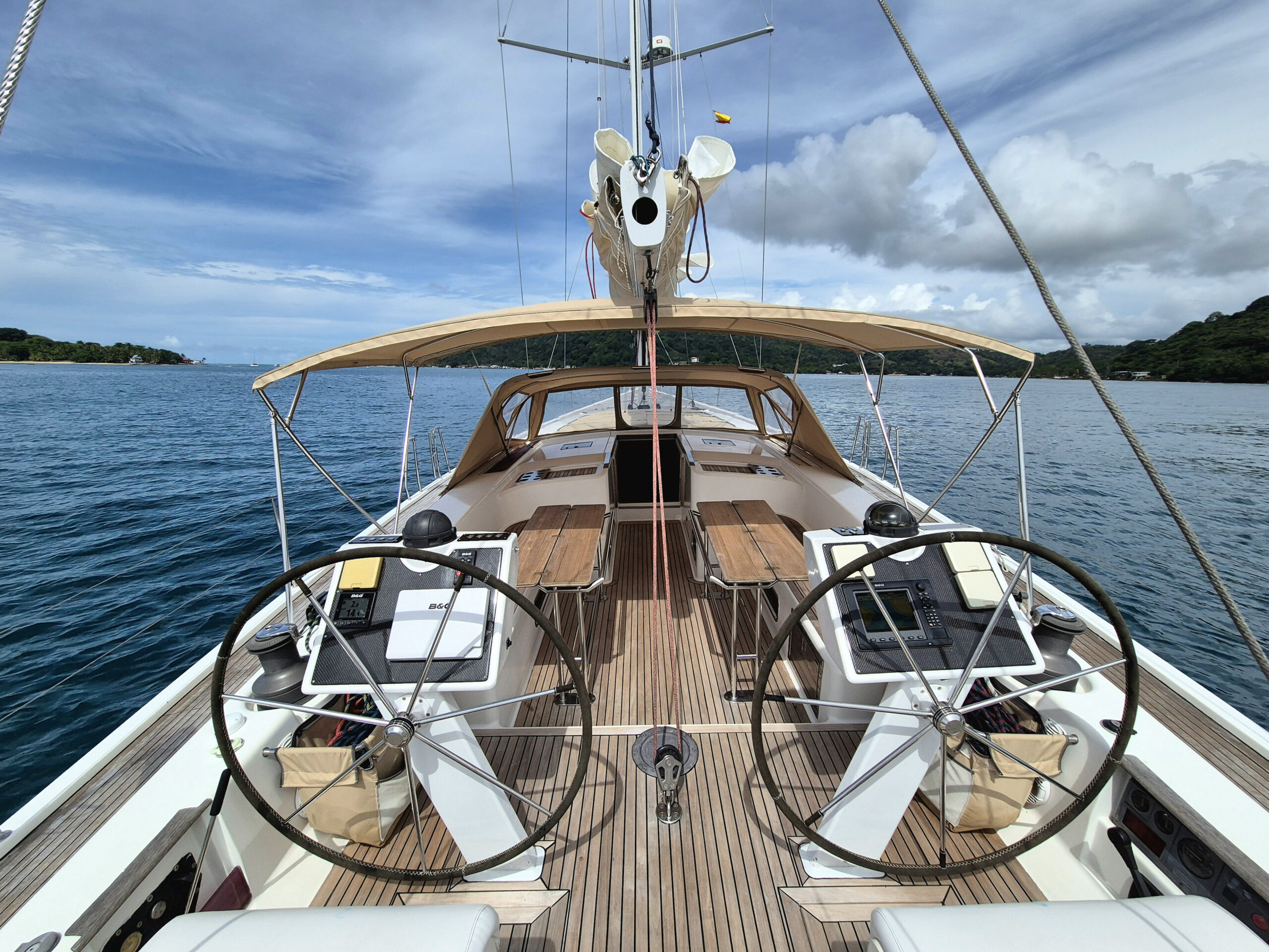 La vida en Hanse 63 fluye entre navegación suave, paisajes espectaculares y espacios exteriores generosos. El amplio cockpit con doble timón, el sun deck y la plataforma de baño hidráulica permiten disfrutar plenamente del entorno caribeño, nadar con facilidad y moverse cómodamente por todo el barco.