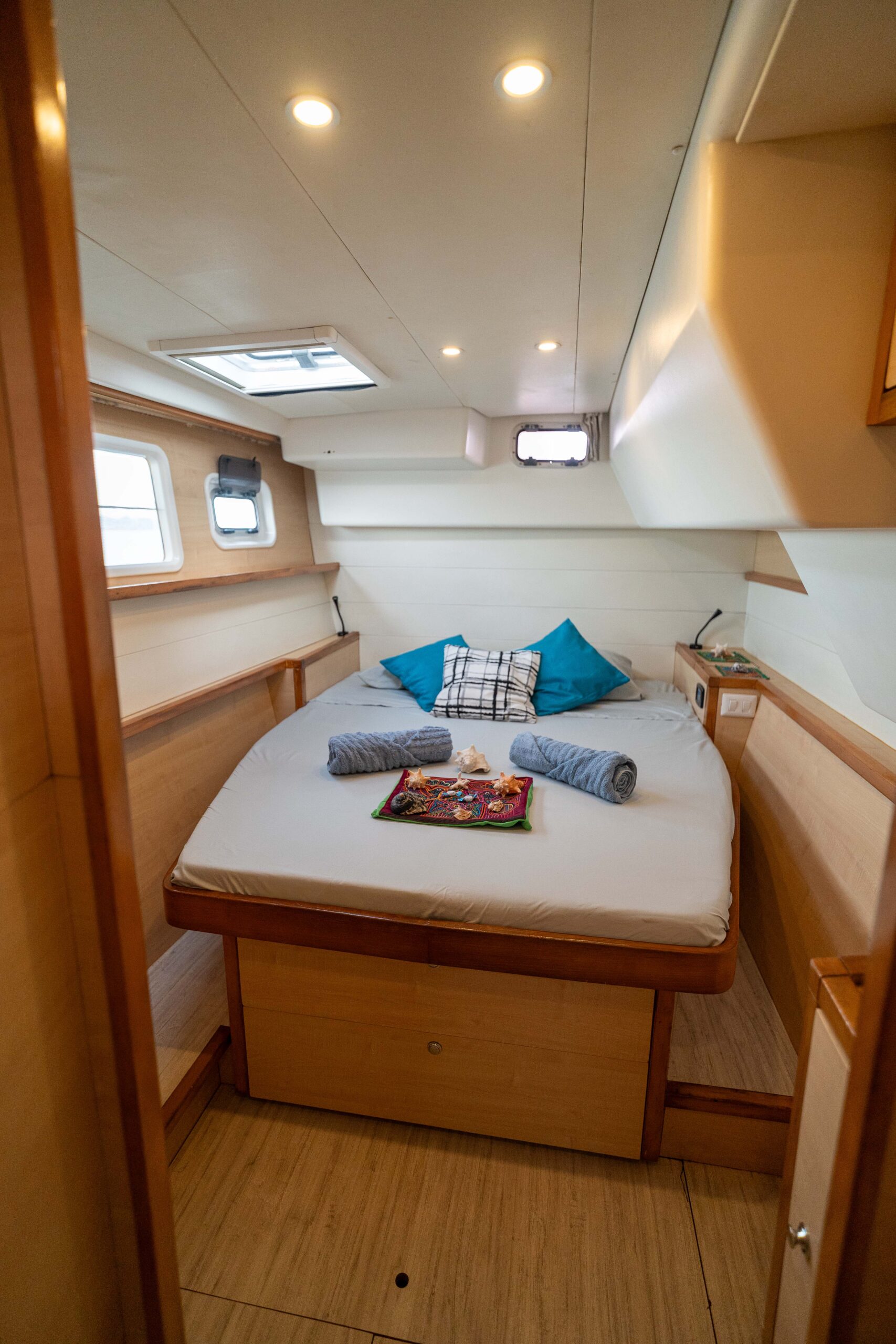 El catamarán cuenta con WiFi Starlink, para mantenerte conectado incluso en islas remotas, motores Yanmar, inversor de 110V, y aire acondicionado en todas las cabinas, asegurando confort en cada momento de tu experiencia.
