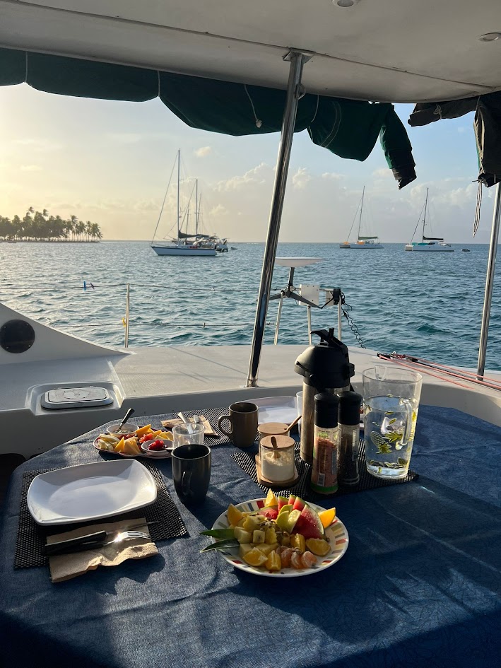 Nuestra tripulación está liderada por el Capitán Jepi, originario de Francia y con una vasta experiencia de más de 21 años realizando charters, incluidos 15 años explorando los rincones más impresionantes de San Blas. Junto a él, nuestra cocinera Yei, oriunda de la región y perteneciente a la etnia Guna, deleitará tu paladar con lo mejor de la gastronomía local.